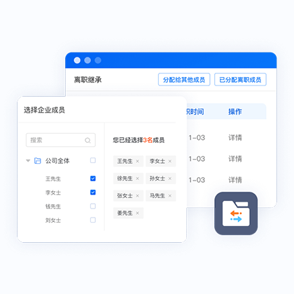 员工离职可一键继承客户资源,客户无感知交接,企业资产不流失