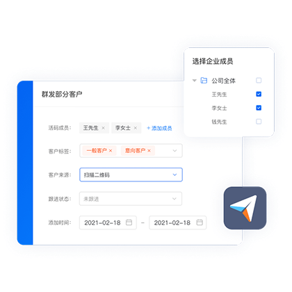 支持给客户、客户群和企业成员群发消息,并可精准筛选用户,提升服务质量
