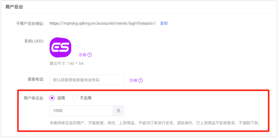 子商户后台可以查看保证金缴纳状态,并可在线缴纳保证金。